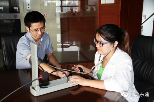 公司邀请中医院的医师,给员工进行体检,包括测量血压,中医把脉,颈椎推拿治疗等,建立员工健康档案,以便更好地对员工的身体健康状况进行跟踪记录。