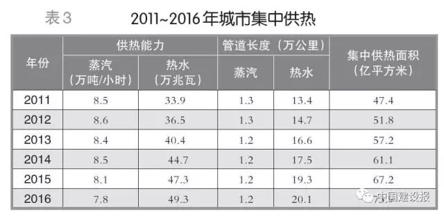 2016年年末,城市供热能力(蒸汽)7.8万吨/小时,比上年减少3.0%,供热能力(热水)49.3万兆瓦,比上年增长4.4%,供热管道21.4万公里,比上年增长4.5%,集中供热面积73.9亿平方米,比上年增长9.9%。(表3)