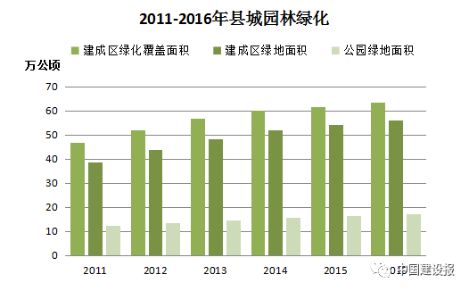 2016年年末,县城建成区绿化覆盖面积63.3万公顷,比上年增长2.6%,建成区绿化覆盖率32.53%,比上年增加1.75个百分点;建成区绿地面积55.9万公顷,比上年增长3.2%,建成区绿地率28.74%,比上年增加1.69个百分点;公园绿地面积17.1万公顷,比上年增长4.4%,人均公园绿地面积11.05平方米,比上年增加0.58平方米。