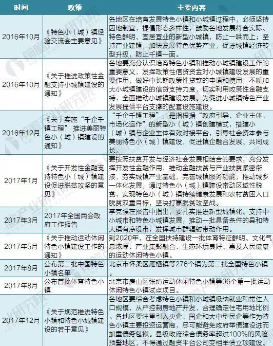 自从浙江省2014年首次提出“特色小镇”并且成功运行,全国掀起了一股特色小镇建设热潮,2017年政府工作报告中明确提出,“扎实推进新型城镇化,支持中小城市和特色小城镇发展”,这也是特色小镇首次写入政府工作报告。