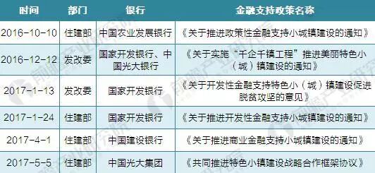 截至目前,国家发展改革委与住建部联合农发行、国开行、光大银行、建设银行等银行先后提出了多个支持特色小镇建设的金融政策文件。