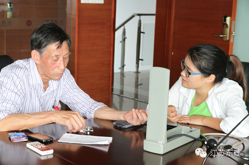 公司邀请中医院的医师,给员工进行体检,包括测量血压,中医把脉,颈椎推拿治疗等,建立员工健康档案,以便更好地对员工的身体健康状况进行跟踪记录。